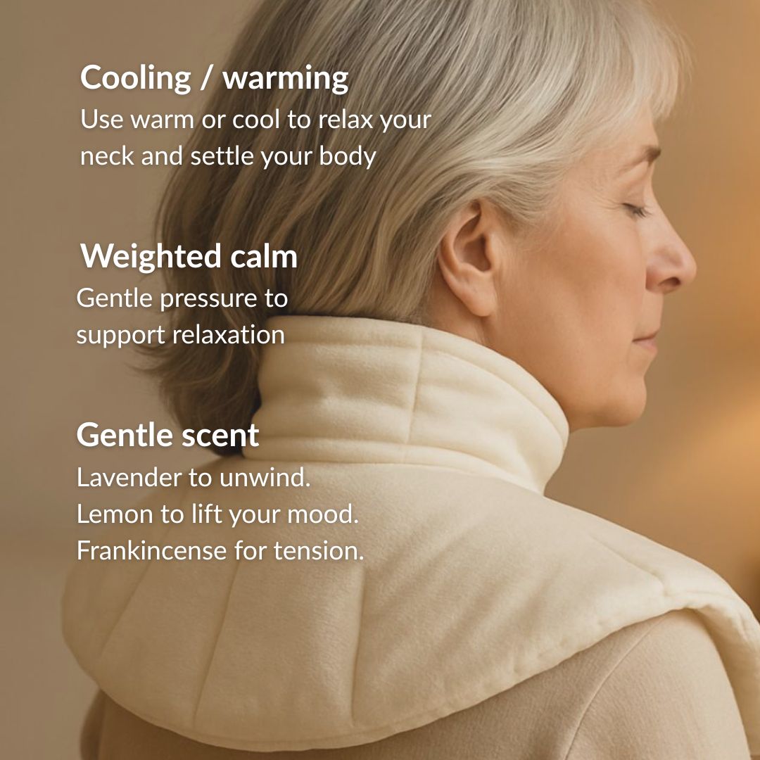 Calm without compromise. No hormones. No artificial fragrance. Just gentle warmth, quiet weight and soft materials – thoughtfully made for women like us.