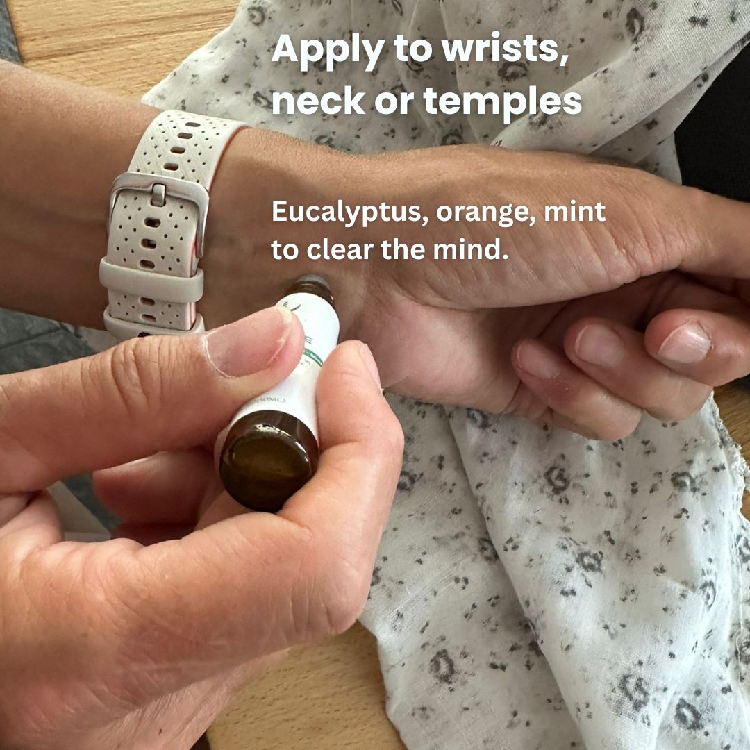 Roll on gently to the wrists, temples or the back of the neck.